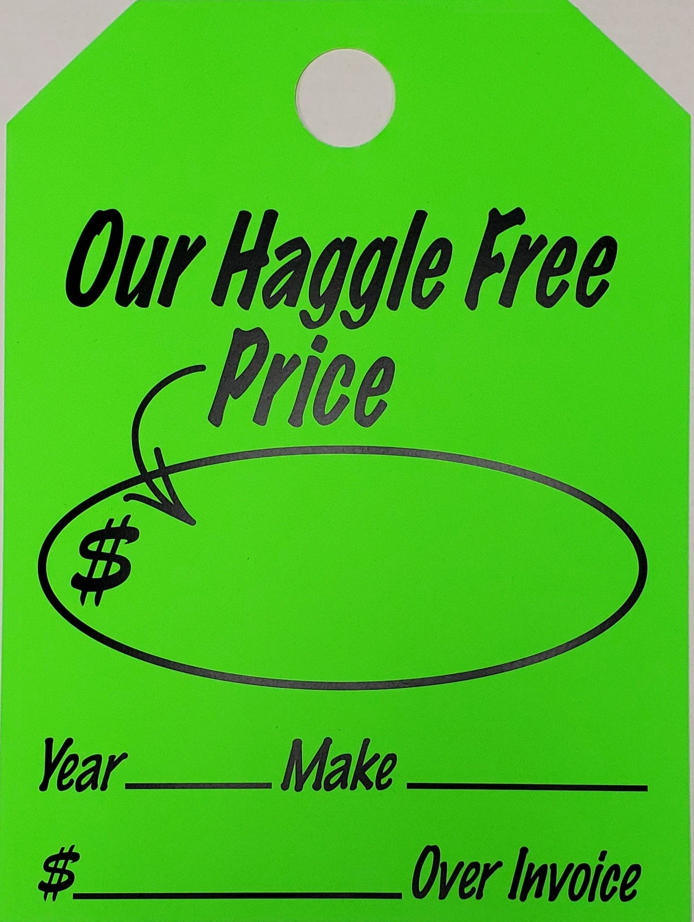 These effective hang tags are printed one side on heavy card stock. They are available in fluorescent green, Size is 8 1/2" x 11 1/2", and they come 50 per pack.