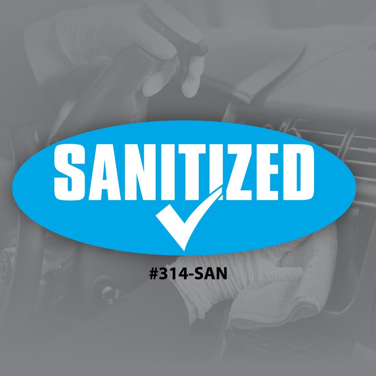This adhesive-backed weatherproof Vinyl Oval Sign will inform your customers that vehicles have been sanitized. Packaged 12 per shrink-wrapped pack. Size is 14" x 5-1/2".